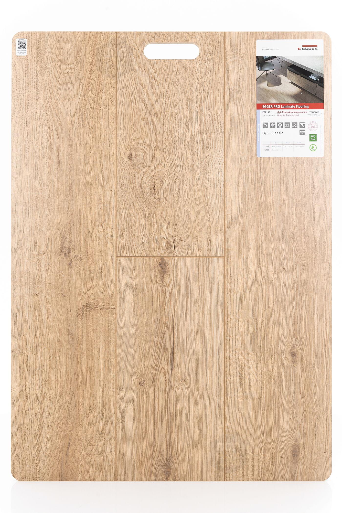 Ламинат EGGER Дуб Предайя натуральный EPL198 - цена 1 215 руб. за квадратный метр. Это покрытие толщиной 8 мм, порода дерева - дуб, фаска с 4-х сторон. Брашированная поверхность ламината имеет светлый оттенок и матовый блеск. Для того, чтобы купить в Краснодаре ламинат из коллекции EGGER Classic 8/33 4V Дуб Предайя натуральный EPL198, положите товар в корзину или свяжитесь с нами любым доступным способом. Товар есть в наличии.