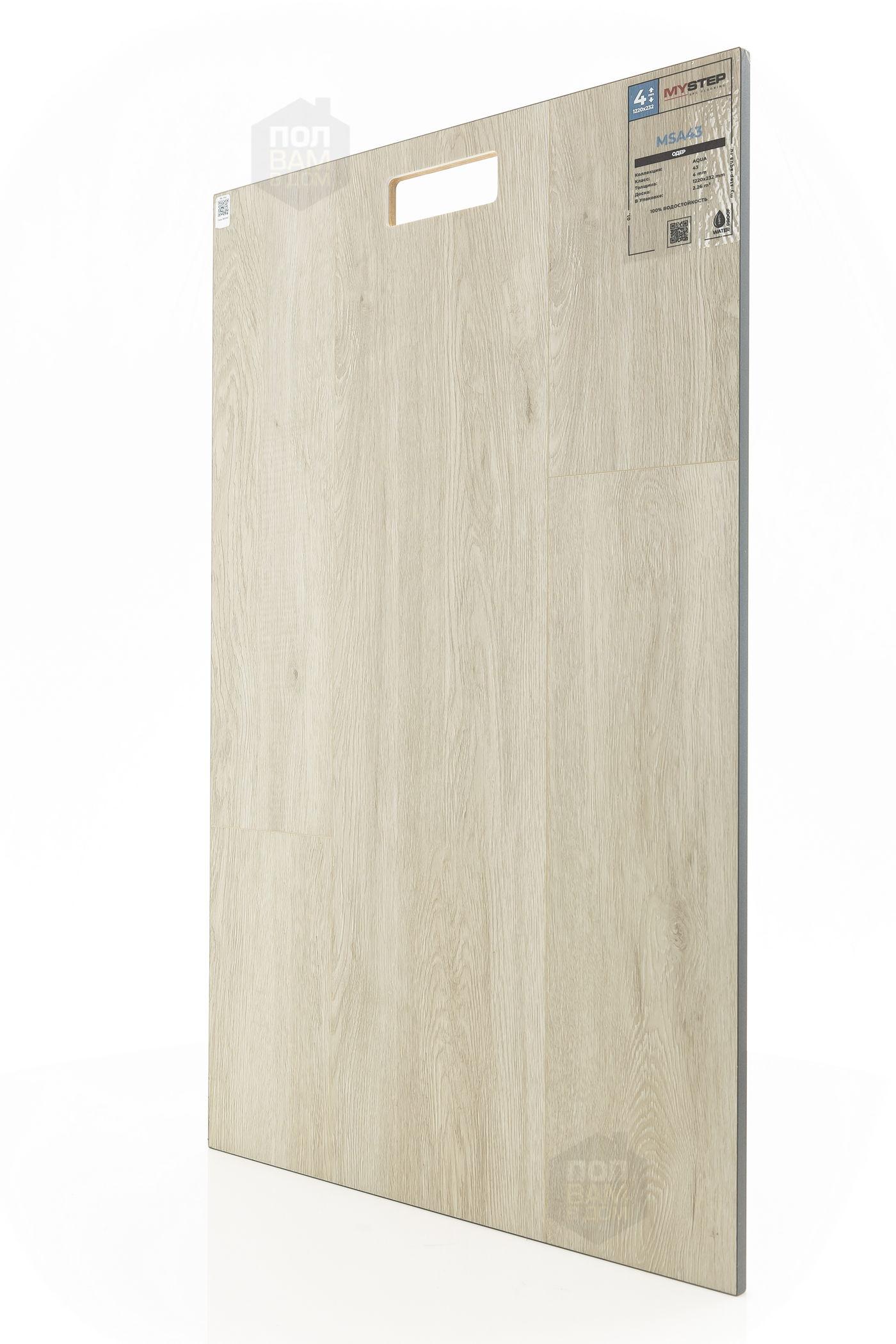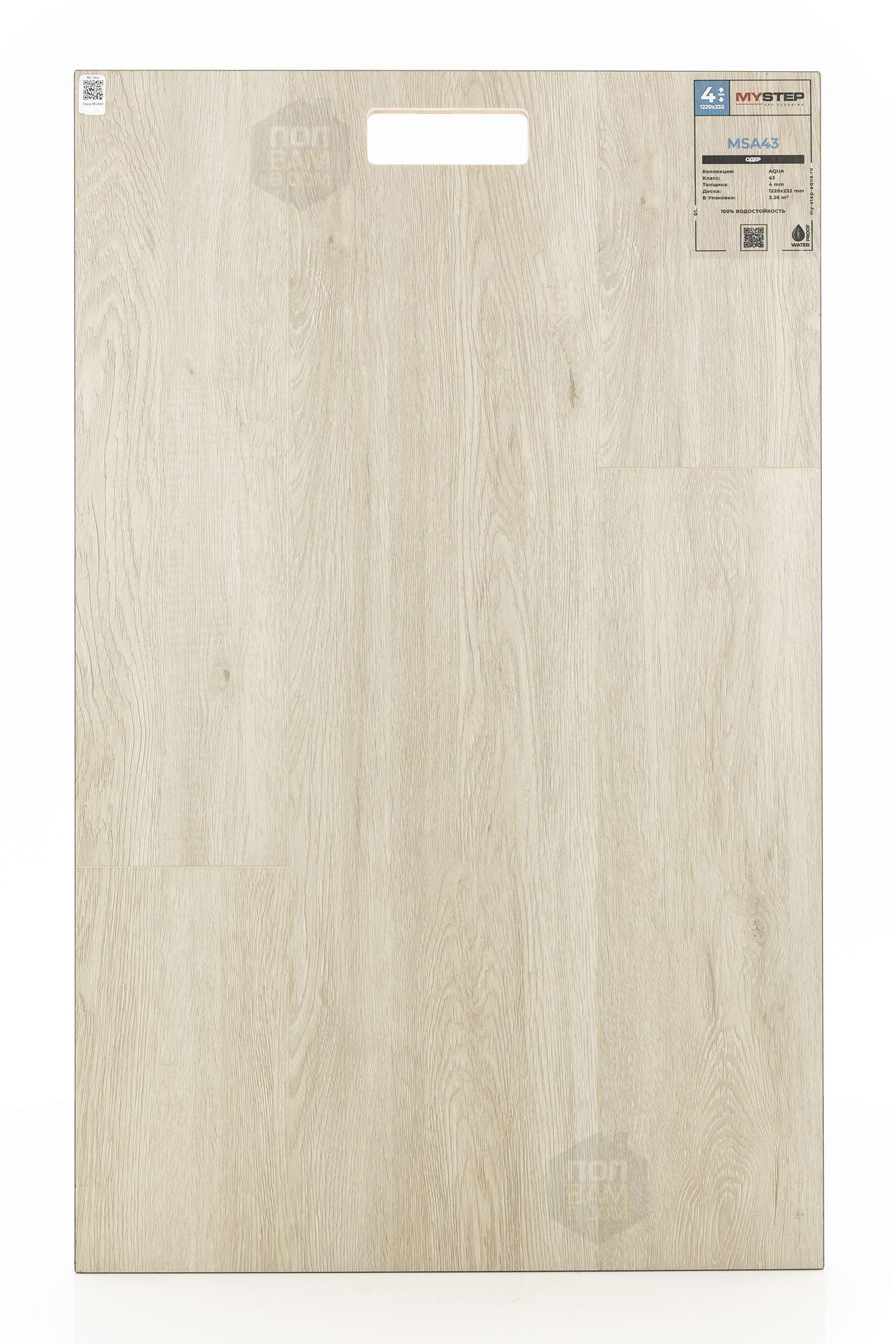SPC ламинат My Step Одер MSA43 - цена 2 690 руб. за квадратный метр. Это покрытие толщиной 4 мм, порода дерева - дуб, фаска с 4-х сторон. Тиснение поверхность SPC ламината имеет светлый оттенок и матовый блеск. Для того, чтобы купить в Краснодаре SPC ламинат из коллекции My Step Аква 4мм Одер MSA43, положите товар в корзину или свяжитесь с нами любым доступным способом. Товар есть в наличии.