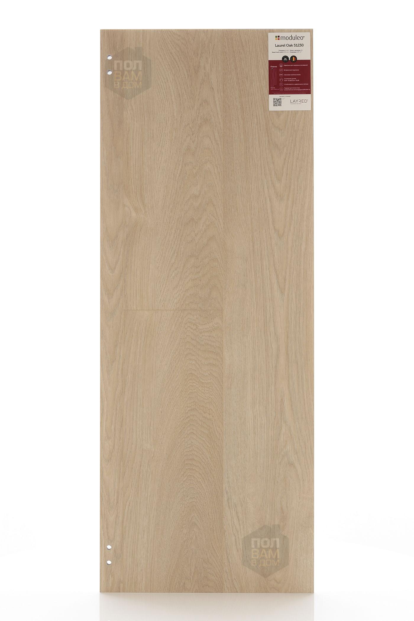 Виниловый ламинат Moduleo Laurel Oak 51230 - цена 4 590 руб. за квадратный метр. Это покрытие толщиной 6 мм, порода дерева - дуб, фаска с 4-х сторон. Брашированная поверхность винилового пола имеет светлый оттенок и матовый блеск. Для того, чтобы купить в Краснодаре виниловый ламинат из коллекции Moduleo LayRed 55 EIR Laurel Oak 51230, положите товар в корзину или свяжитесь с нами любым доступным способом. Товар есть в наличии.