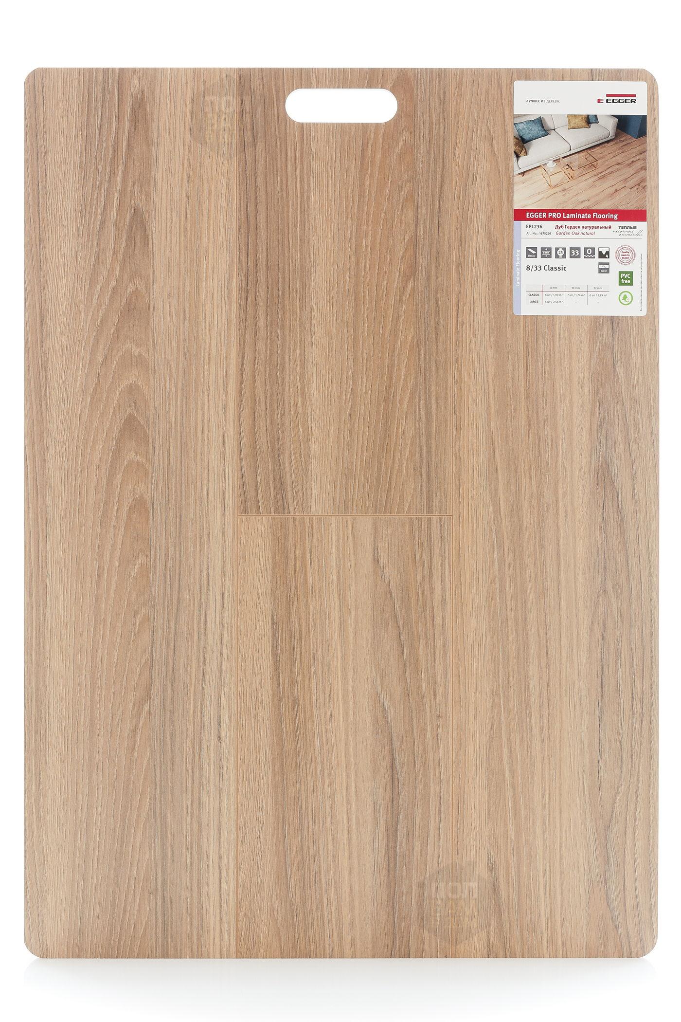 Ламинат EGGER Дуб Гарден натуральный EPL236 - цена 1 215 руб. за квадратный метр. Это покрытие толщиной 8 мм, порода дерева - дуб, фаска с 4-х сторон. Брашированная поверхность ламината имеет светлый оттенок и матовый блеск. Для того, чтобы купить в Краснодаре ламинат из коллекции EGGER Classic 8/33 4V Дуб Гарден натуральный EPL236, положите товар в корзину или свяжитесь с нами любым доступным способом. Товар есть в наличии.