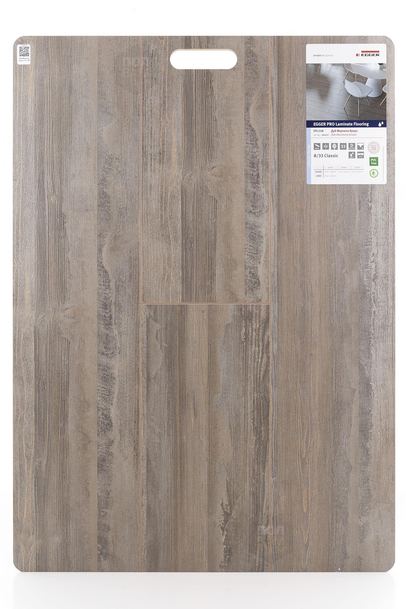 Ламинат EGGER Дуб Марчена Браун EPL248 - цена 1 715 руб. за квадратный метр. Это покрытие толщиной 8 мм, порода дерева - дуб, фаска с 4-х сторон. Брашированная поверхность ламината имеет светлый оттенок и матовый блеск. Для того, чтобы купить в Краснодаре ламинат из коллекции EGGER Classic 8/33 aqua+ Дуб Марчена Браун EPL248, положите товар в корзину или свяжитесь с нами любым доступным способом. Товар есть в наличии.