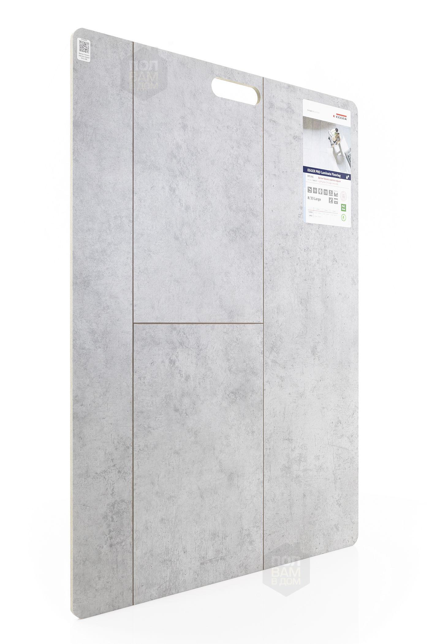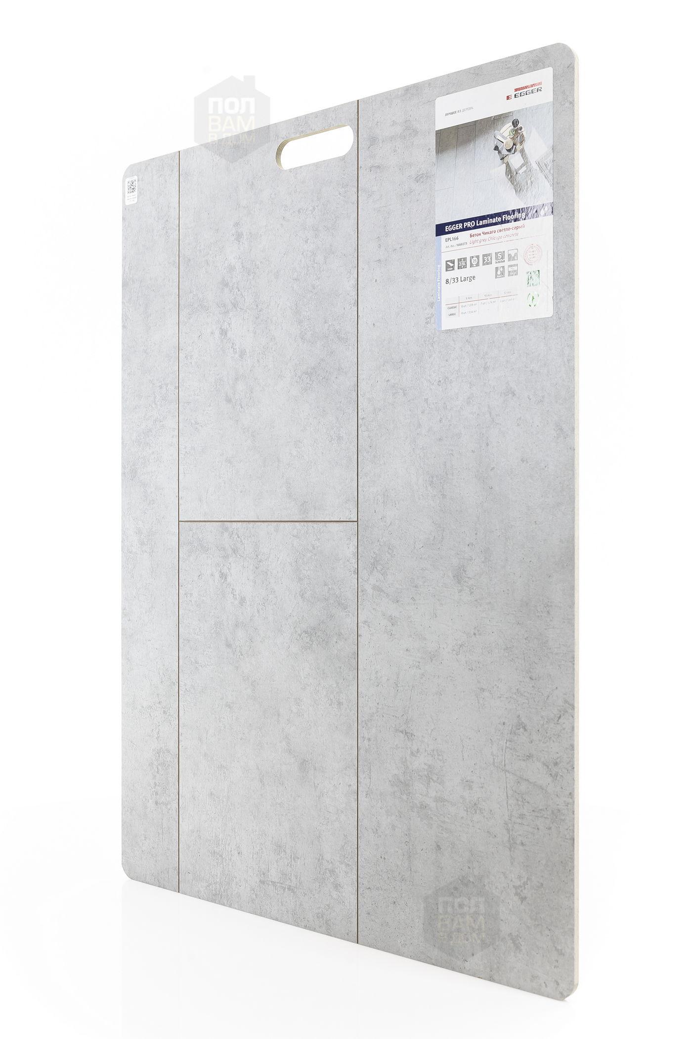 Ламинат EGGER Бетон Чикаго светло-серый EPL166 - цена 1 850 руб. за квадратный метр. Это покрытие толщиной 8 мм, фаска с 4-х сторон. Брашированная поверхность ламината имеет светлый оттенок и матовый блеск. Для того, чтобы купить в Краснодаре ламинат из коллекции EGGER Large 8/33 Aqua+ Бетон Чикаго светло-серый EPL166, положите товар в корзину или свяжитесь с нами любым доступным способом. Товар есть в наличии.