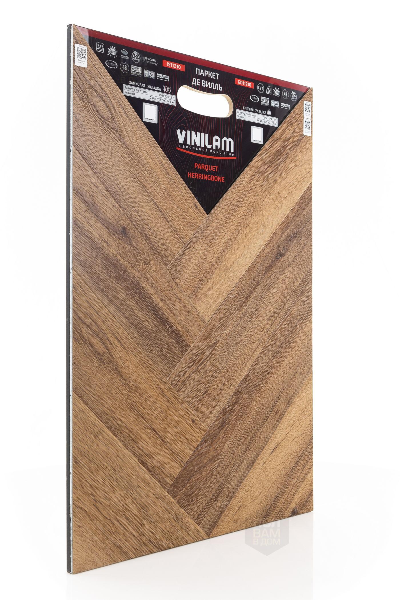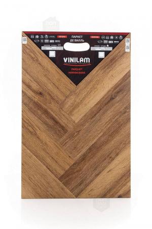 Виниловый ламинат Vinilam - это современное и надежное напольное покрытие, обладающее превосходными эксплуатационными и эстетическими характеристиками. Производится напольное покрытие в Китае, основой является прочный винил, имеющий верхнюю часть с фактурой натуральной древесины или камня. Ассортимент насчитывает более 80 декоров, среди которых есть декоры елочки. Виниловый ламинат Vinilam имеет 43 класс нагрузки и идет в толщине 2,5 мм. Материал обладает ударопрочностью, устойчивостью к царапинам и другим механическим повреждениям. Легко переносит температурные и химические воздействия. Монтаж допустим не только в жилых помещениях, но и во влажных, например, санузлах.