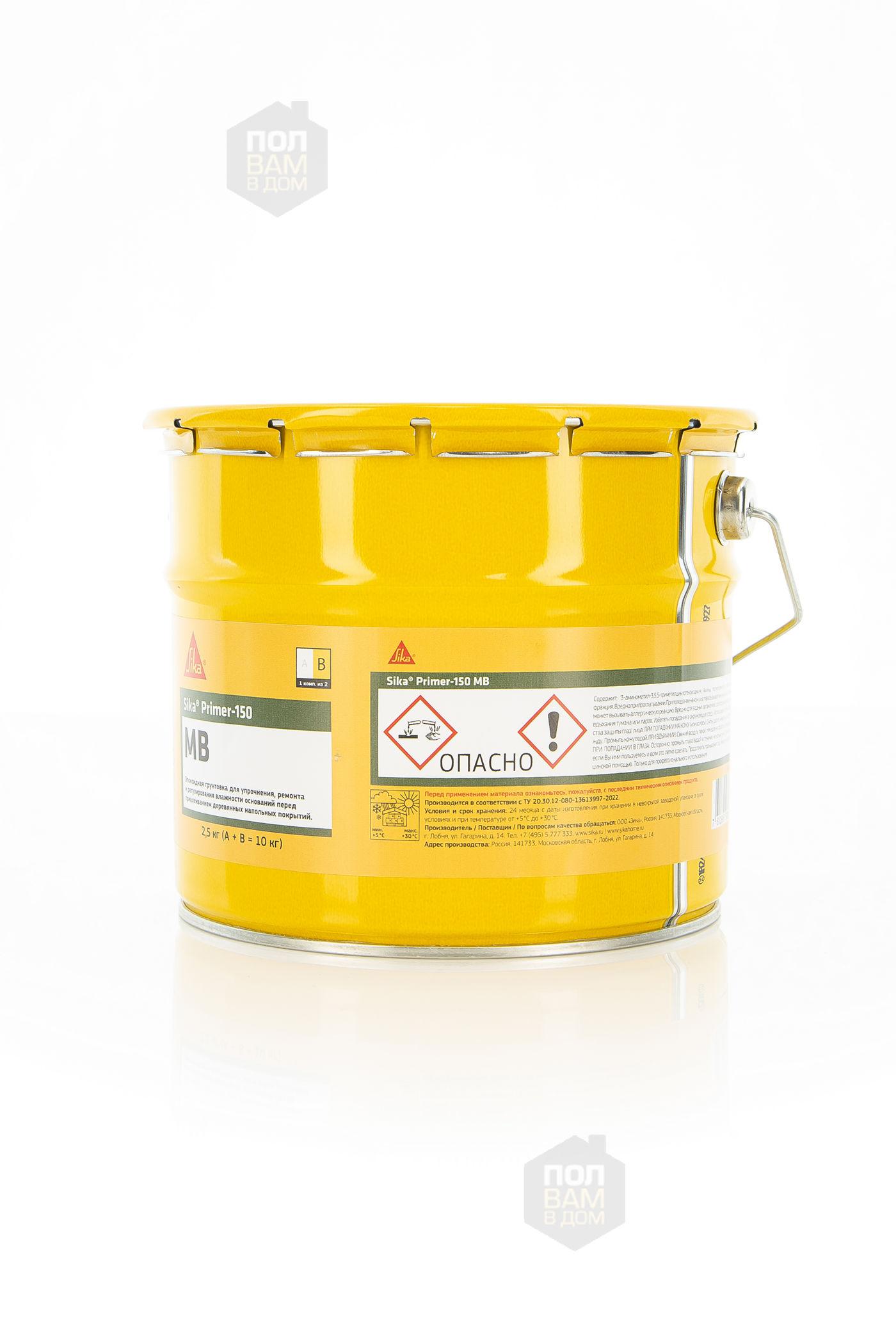 Sika Primer-150 MB - двухкомпонентный, не содержащий растворителей, маловязкий грунтовочный материал на основе эпоксидной смолы, использующийся вместе с эластичными клеевыми материалами SikaBond при укладке деревянных напольных покрытий на влажные (≤ 6% СМ) и недостаточно прочные основания.