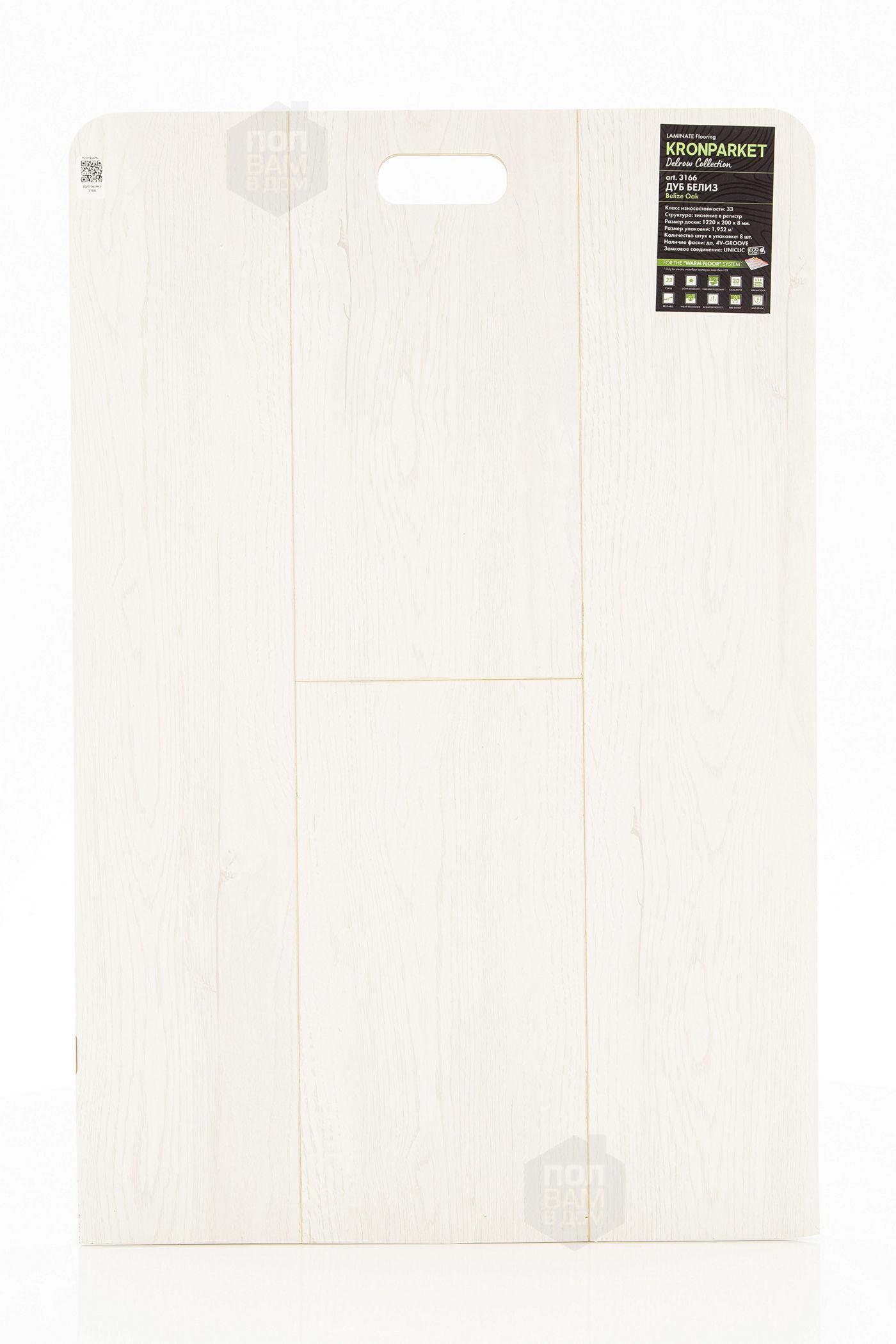 Ламинат Kronparket Дуб Белиз 3166 - цена 1 790 руб. за квадратный метр. Это покрытие толщиной 8 мм, порода дерева - дуб, фаска с 4-х сторон. Брашированная поверхность ламината имеет светлый оттенок и матовый блеск. Для того, чтобы купить в Краснодаре ламинат из коллекции Kronparket Delrow Дуб Белиз 3166, положите товар в корзину или свяжитесь с нами любым доступным способом. Товар есть в наличии.