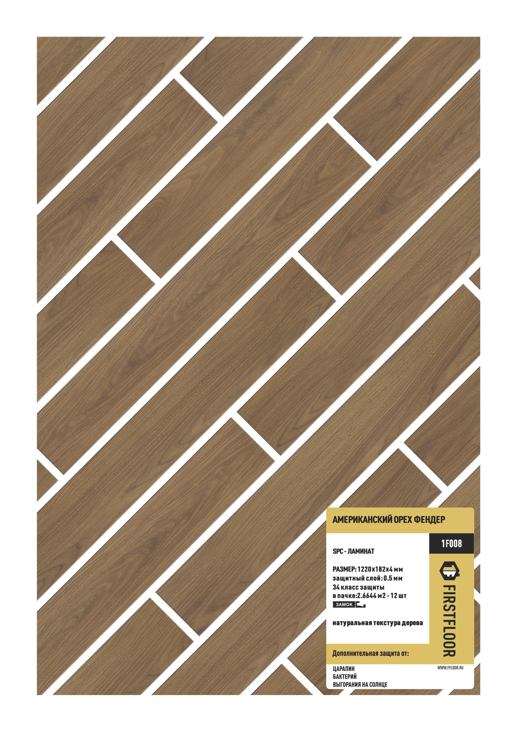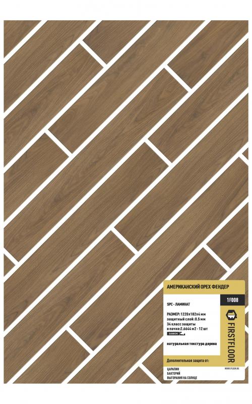 SPC ламинат FirstFloor Американский орех Фендер 1F008