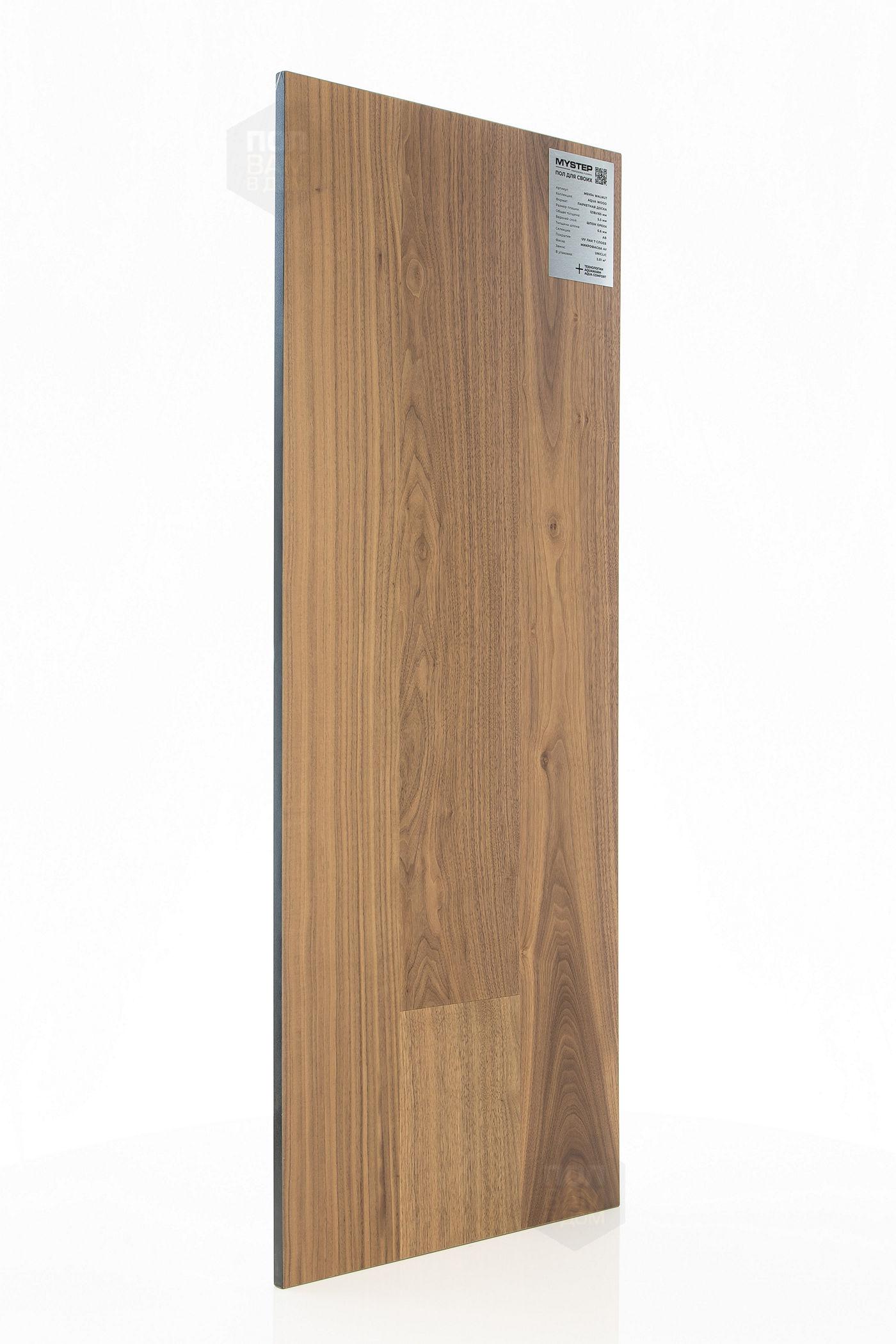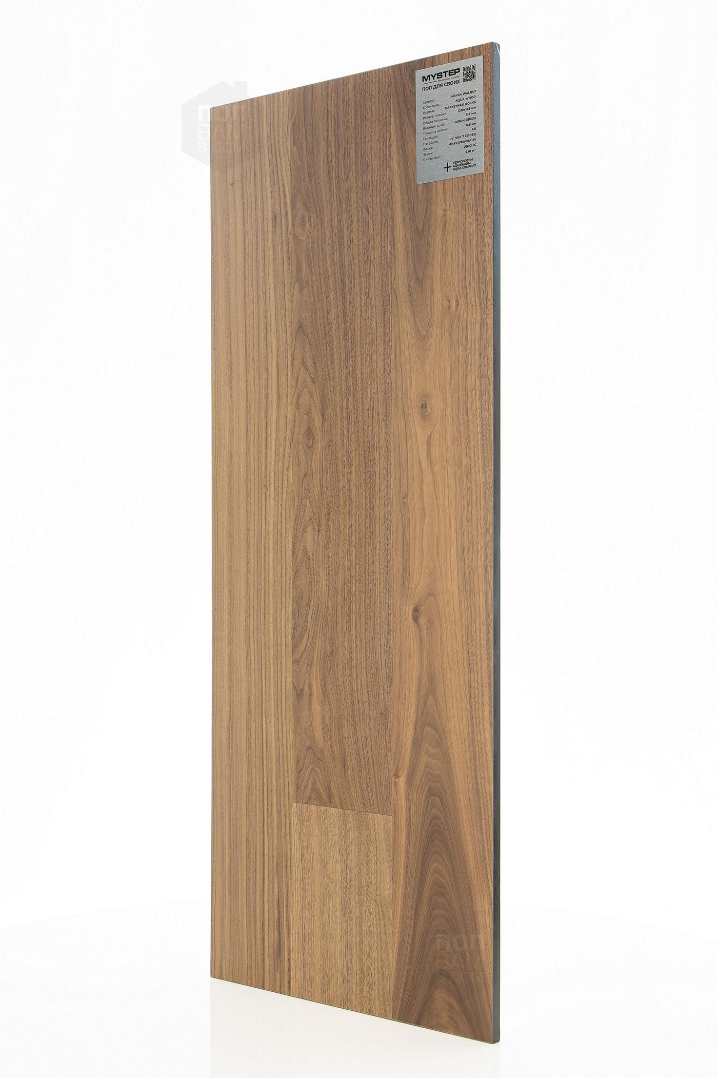 Паркетная доска My Step Walnut MSV04 - цена 4 990 руб. за квадратный метр. Это покрытие толщиной 5,5 мм, порода дерева - орех, сортировка - натур, фаска с 4-х сторон. Брашированная поверхность паркетной доски и матовый блеск. Для того, чтобы купить в Краснодаре паркетную доску из коллекции My Step Aqua Wood Walnut MSV04, положите товар в корзину или свяжитесь с нами любым доступным способом. Товар есть в наличии.