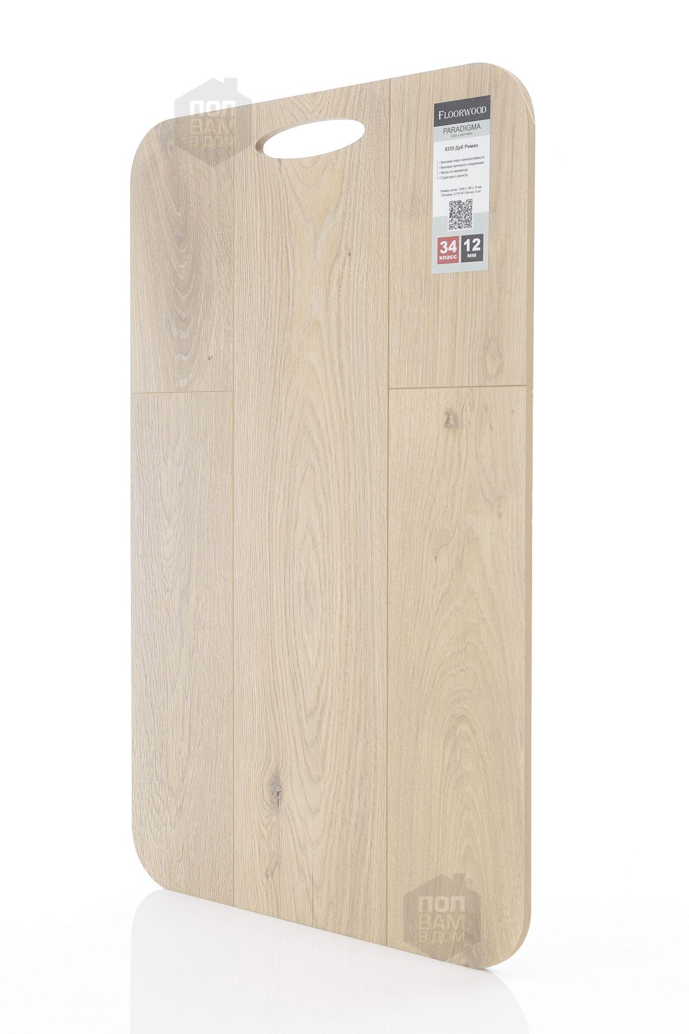 Ламинат Floorwood Дуб Риман 8335 - цена 2 037 руб. за квадратный метр. Это покрытие толщиной 12 мм, порода дерева - дуб, фаска с 4-х сторон. Брашированная поверхность ламината и полуматовый блеск. Для того, чтобы купить в Краснодаре ламинат из коллекции Floorwood Paradigma Дуб Риман 8335, положите товар в корзину или свяжитесь с нами любым доступным способом. Товар есть в наличии.