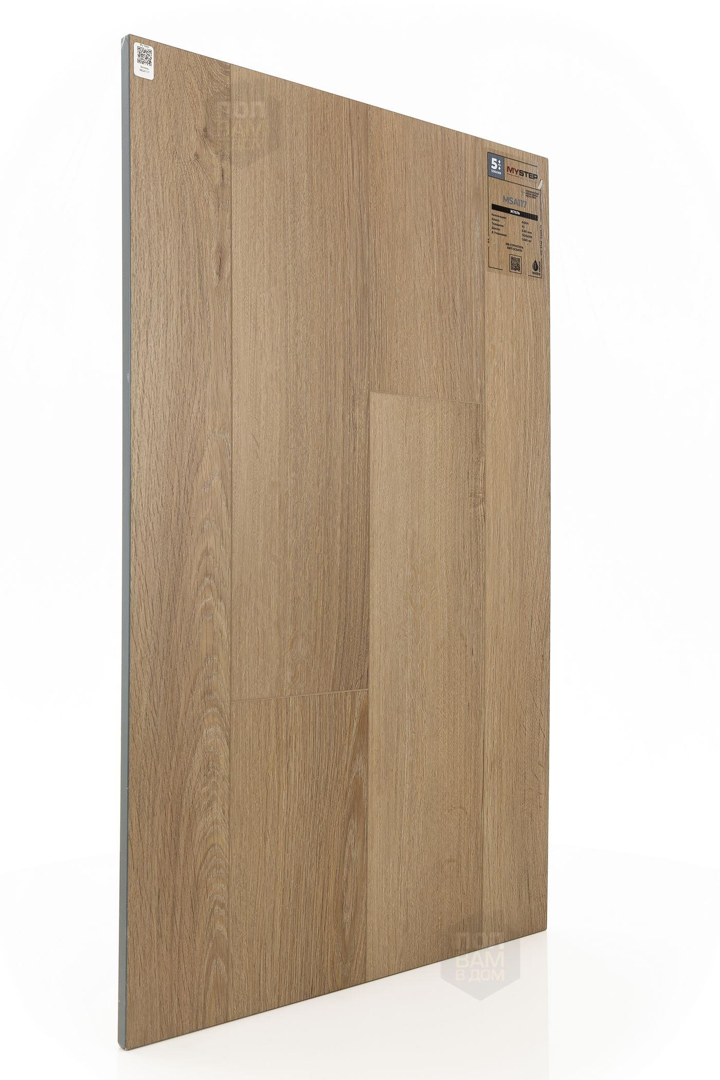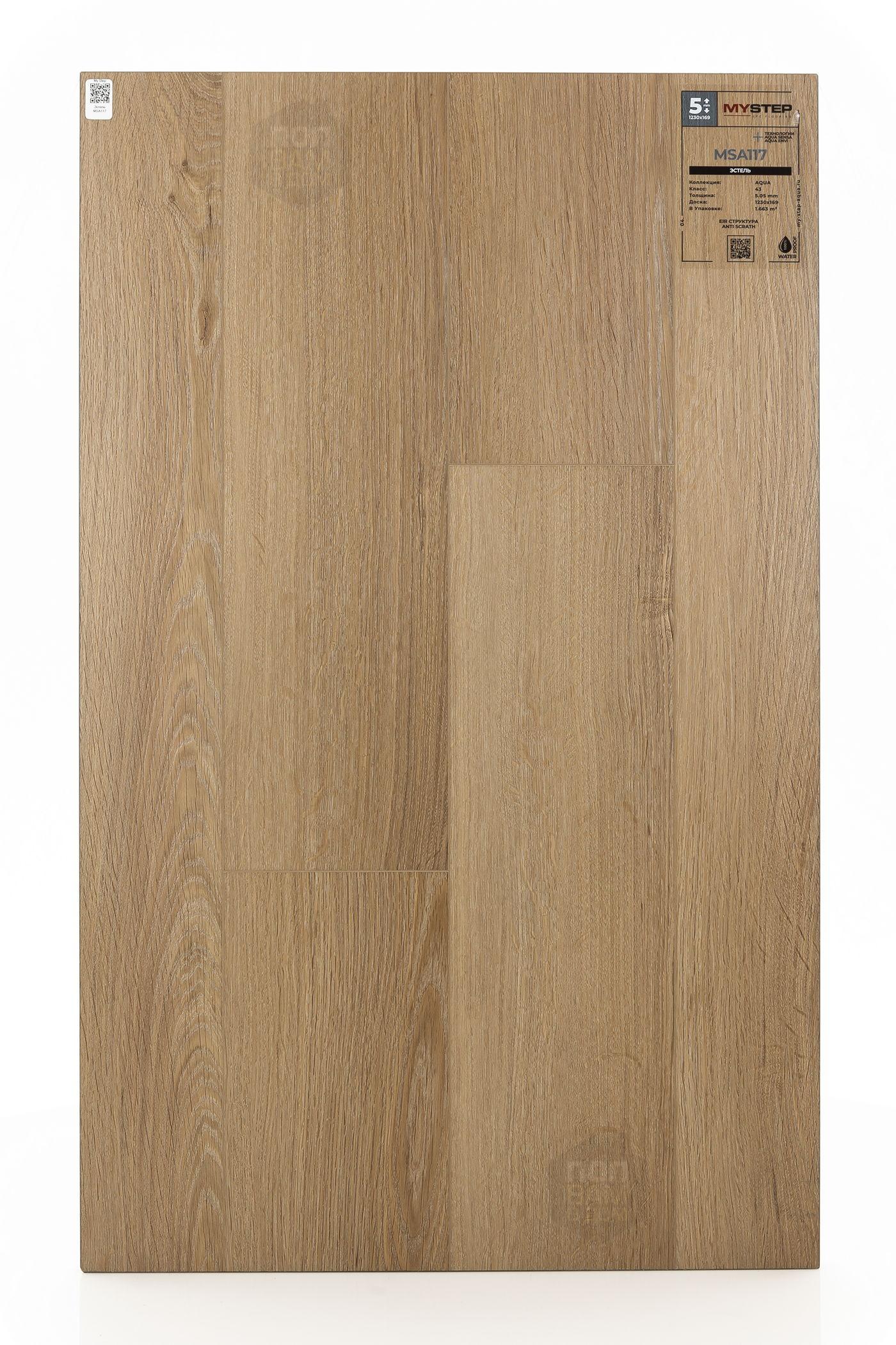 SPC ламинат My Step Эстель MSA117 - цена 3 190 руб. за квадратный метр. Это покрытие толщиной 5 мм, порода дерева - дуб, фаска с 4-х сторон. Тиснение поверхность SPC ламината имеет светлый оттенок и матовый блеск. Для того, чтобы купить в Краснодаре SPC ламинат из коллекции My Step Аква 5,05мм Эстель MSA117, положите товар в корзину или свяжитесь с нами любым доступным способом. Товар есть в наличии.