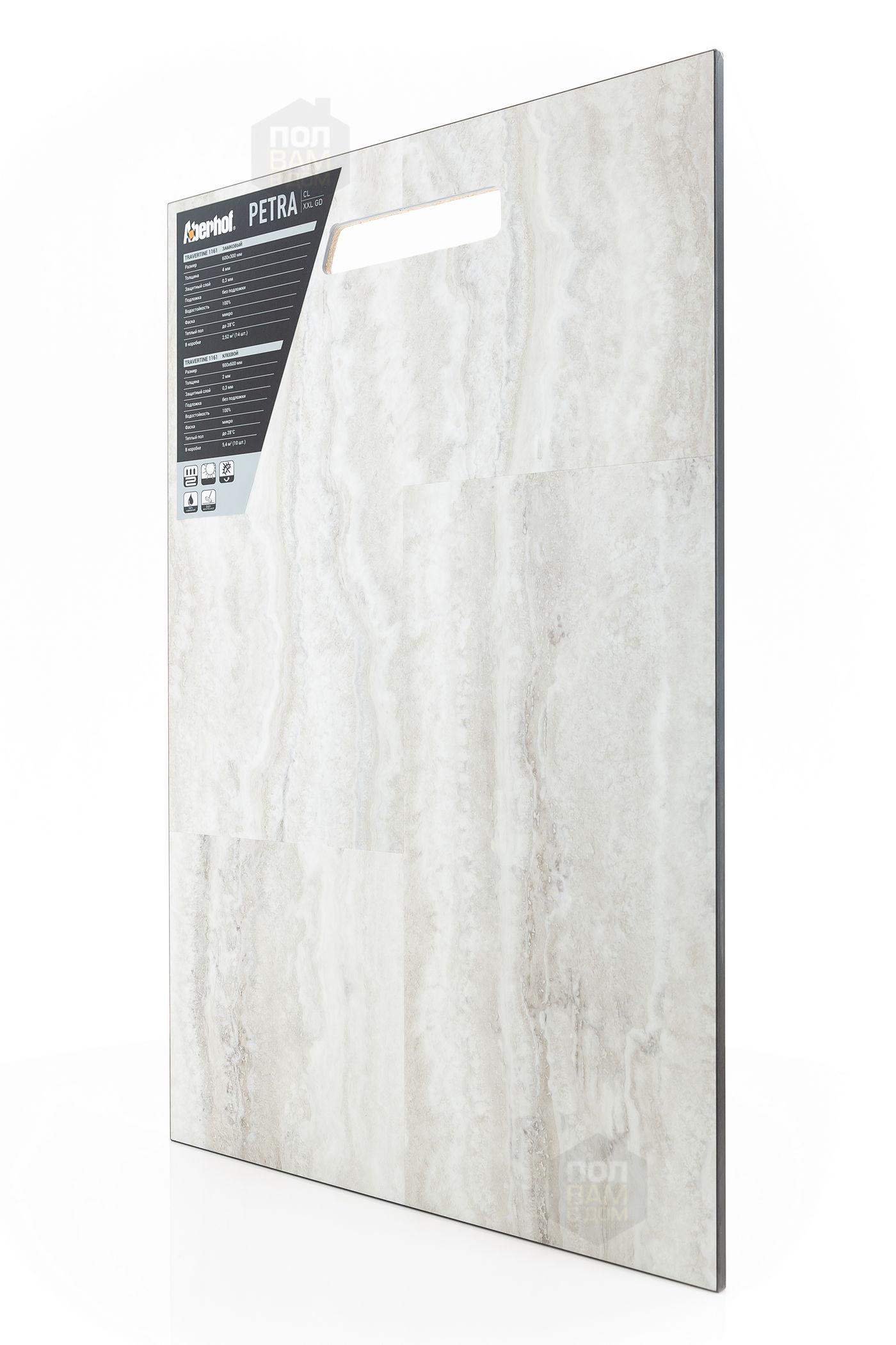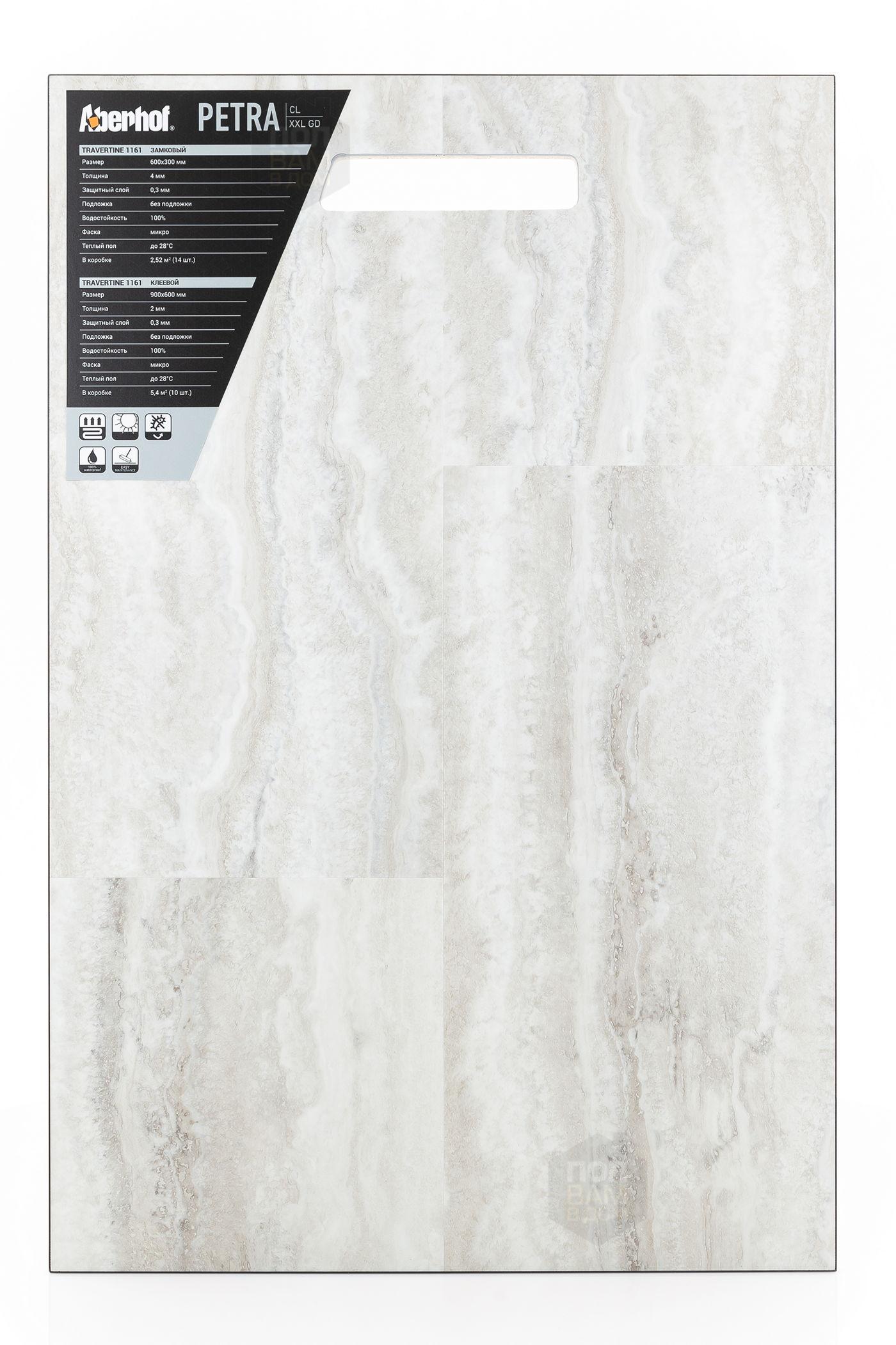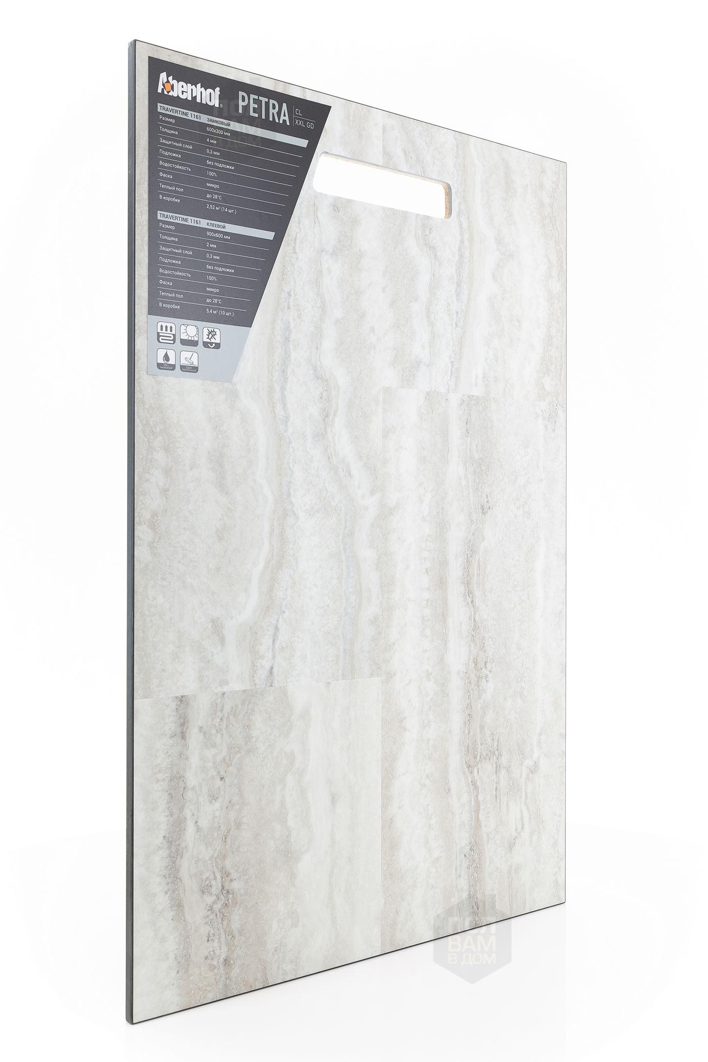 Виниловый ламинат Aberhof Travertine 1161 - цена 1 420 руб. за квадратный метр. Это покрытие толщиной 2 мм, фаска с 4-х сторон. Брашированная поверхность винилового пола имеет светлый оттенок и матовый блеск. Для того, чтобы купить в Краснодаре виниловый ламинат из коллекции Aberhof Petra XXL GD Travertine 1161, положите товар в корзину или свяжитесь с нами любым доступным способом. Товар есть в наличии.