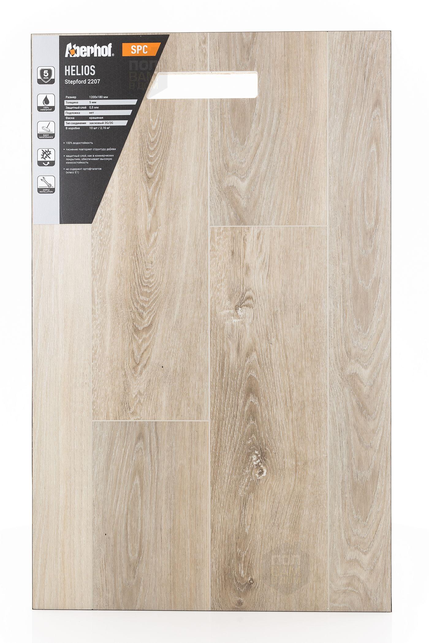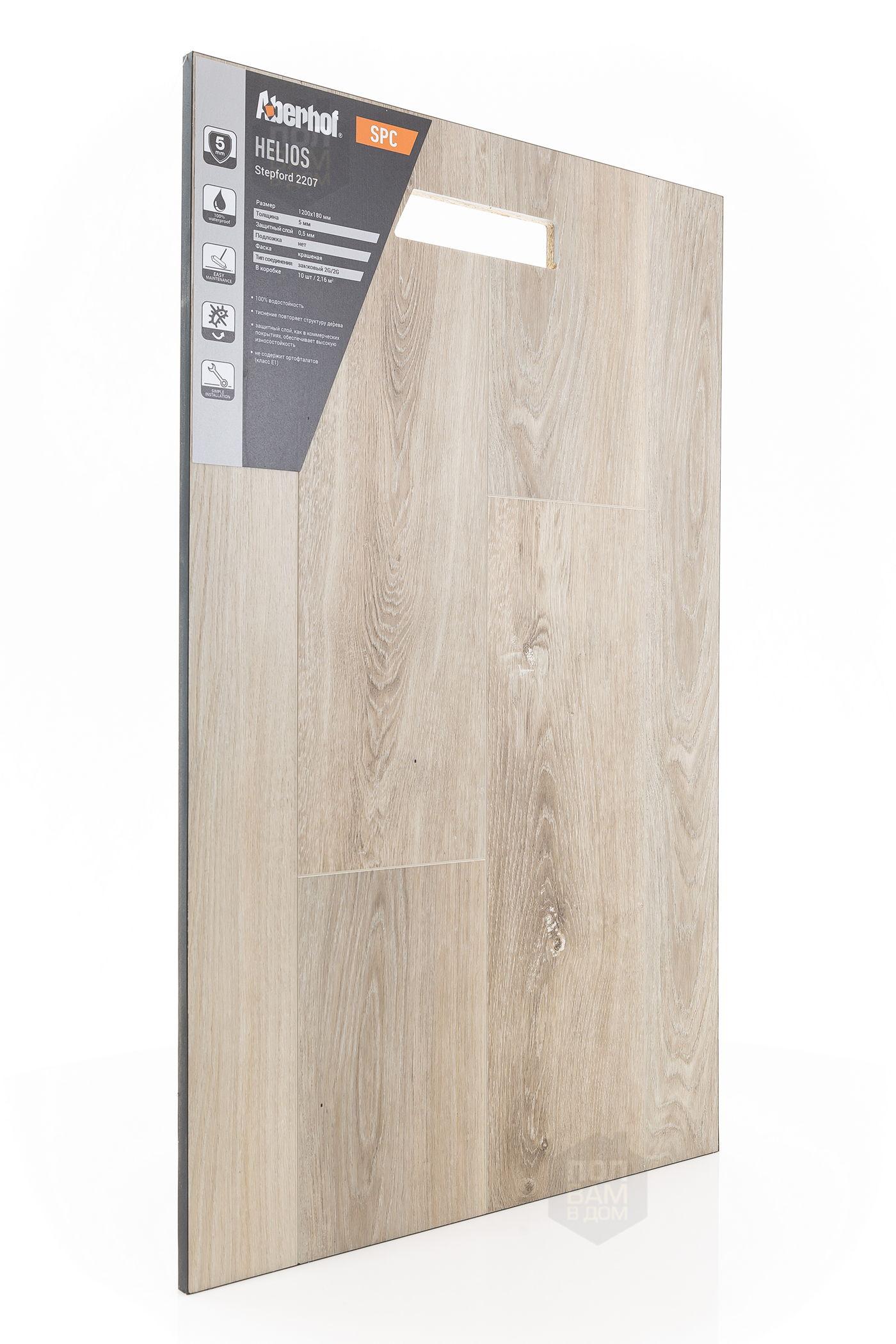 SPC ламинат Aberhof Stepford 2207 - цена 2 663 руб. за квадратный метр. Это покрытие толщиной 5 мм, порода дерева - дуб, фаска с 4-х сторон. Брашированная поверхность SPC ламината имеет светлый оттенок и матовый блеск. Для того, чтобы купить в Краснодаре SPC ламинат из коллекции Aberhof Helios Stepford 2207, положите товар в корзину или свяжитесь с нами любым доступным способом. Товар есть в наличии.