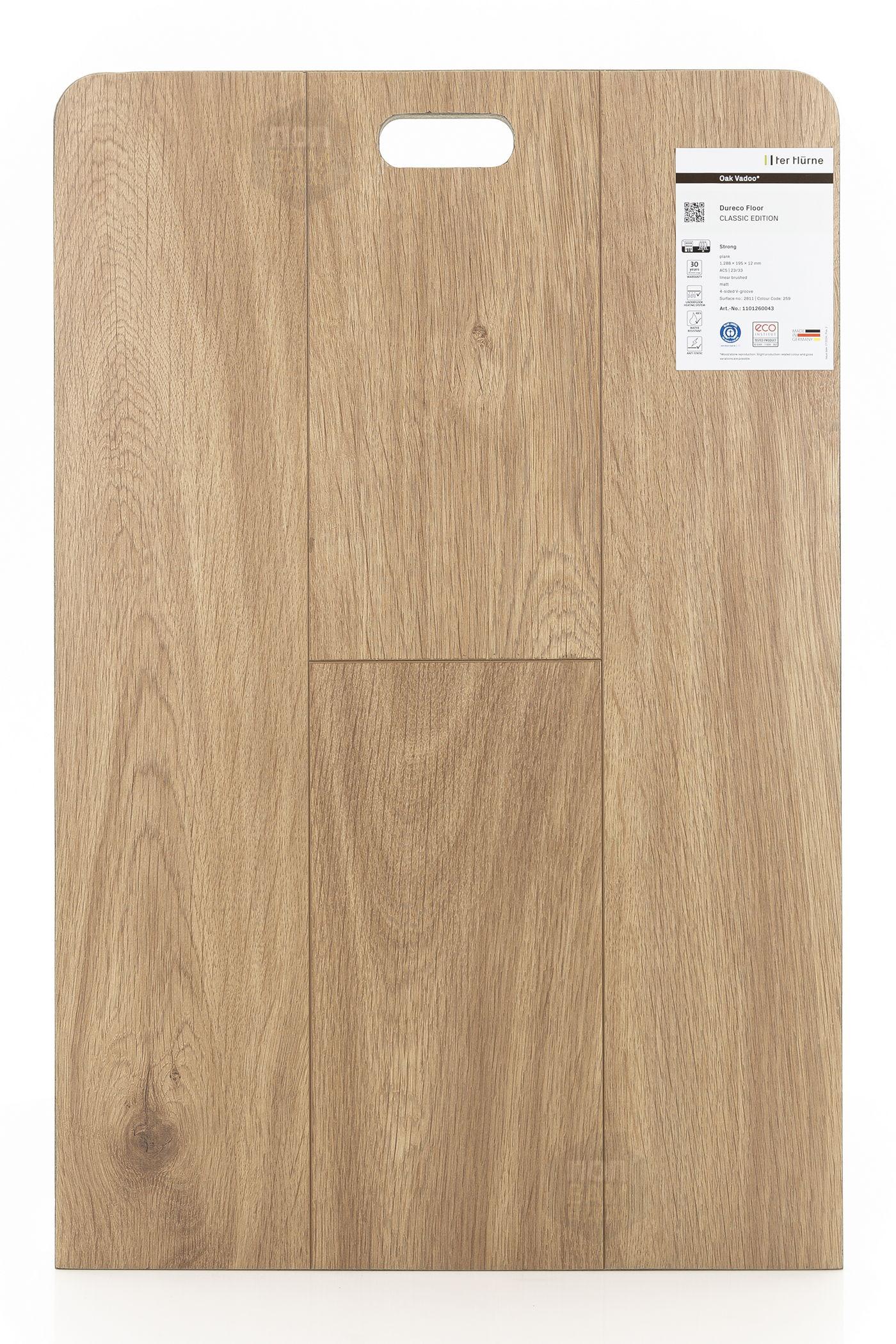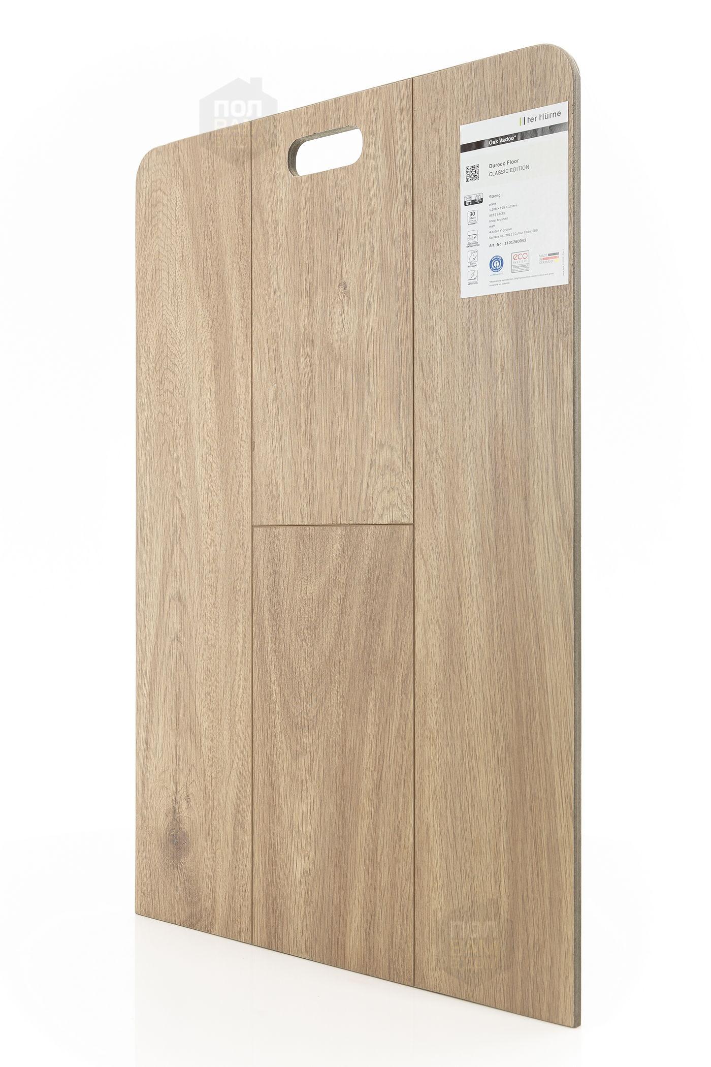 Ламинат TerHurne Дуб Вааду 2811 - цена 4 650 руб. за квадратный метр. Это покрытие толщиной 12 мм, порода дерева - дуб, фаска с 4-х сторон. Брашированная поверхность ламината имеет светлый оттенок и матовый блеск. Для того, чтобы купить в Краснодаре ламинат из коллекции TerHurne Dureco Classic Edition Дуб Вааду 2811, положите товар в корзину или свяжитесь с нами любым доступным способом. Товар есть в наличии.