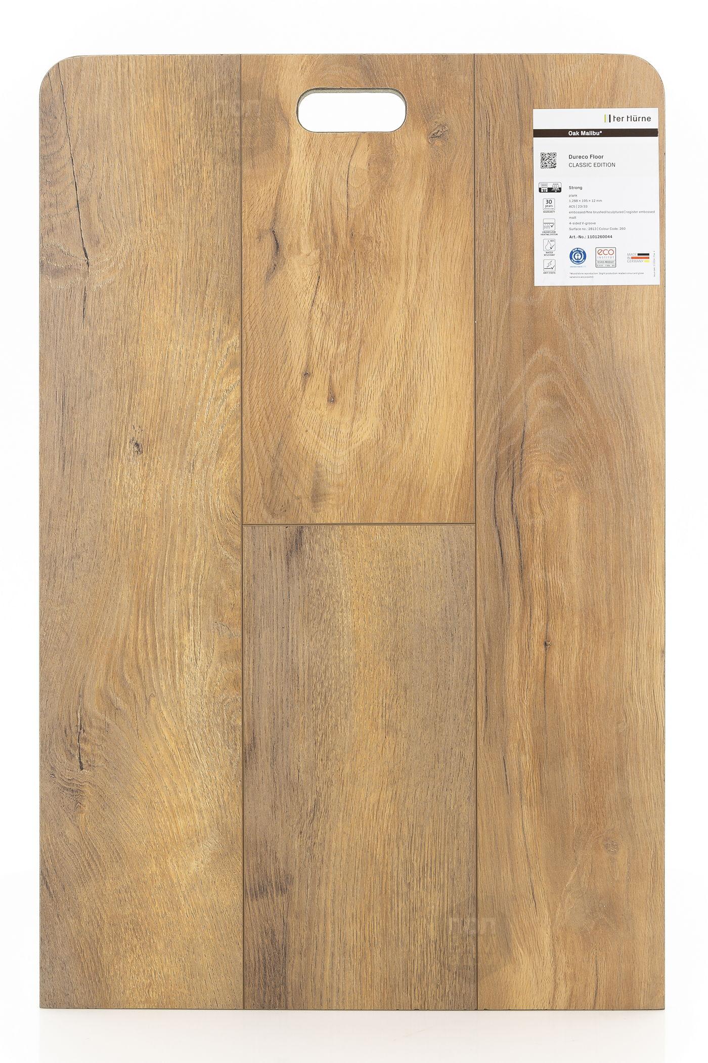 Ламинат TerHurne Дуб Малибу 2813 - цена 4 650 руб. за квадратный метр. Это покрытие толщиной 12 мм, порода дерева - дуб, фаска с 4-х сторон. Брашированная поверхность ламината имеет светлый оттенок и матовый блеск. Для того, чтобы купить в Краснодаре ламинат из коллекции TerHurne Dureco Classic Edition Дуб Малибу 2813, положите товар в корзину или свяжитесь с нами любым доступным способом. Товар есть в наличии.