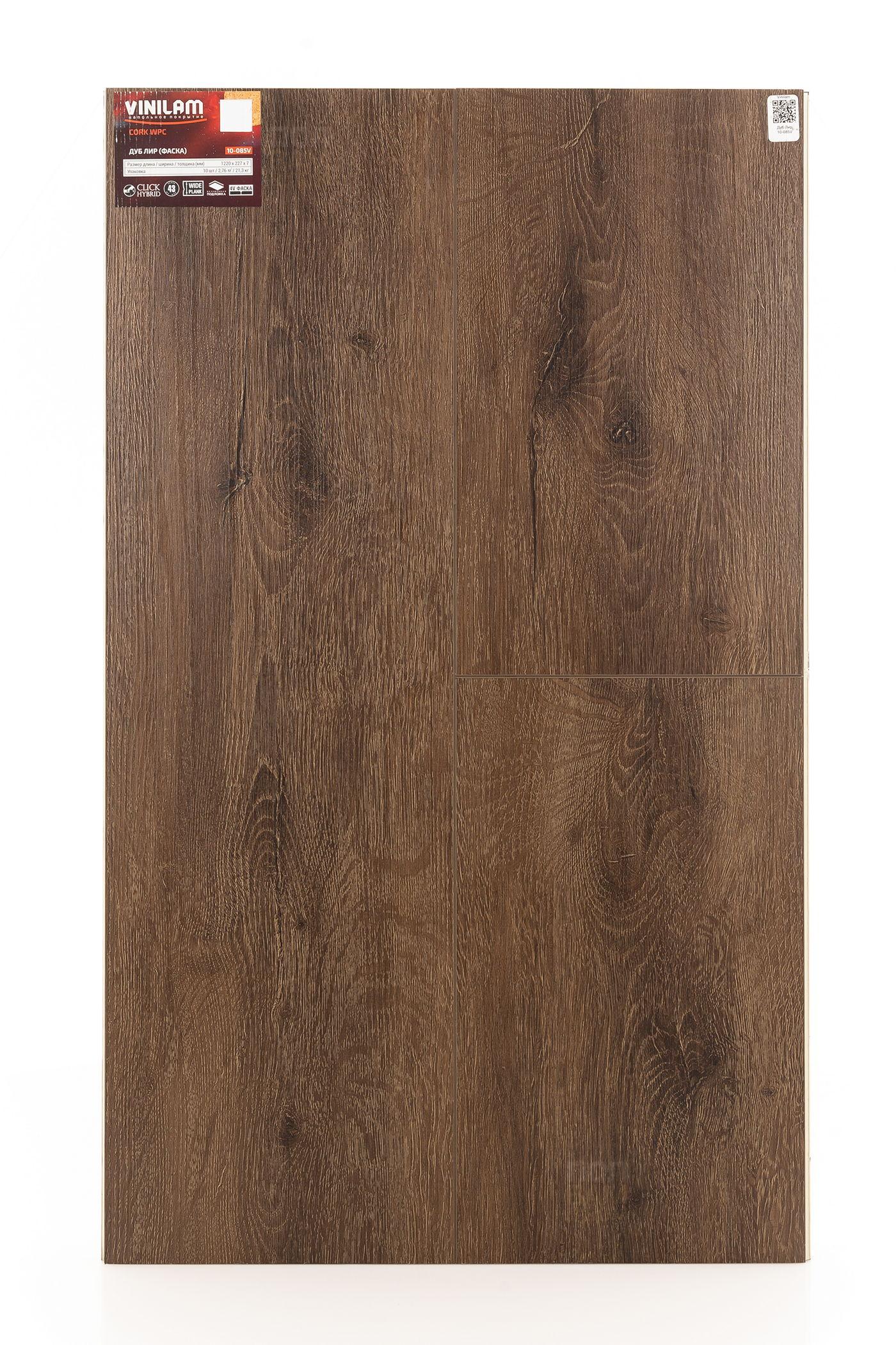SPC ламинат Vinilam Дуб Лир 10-085V - цена 4 099 руб. за квадратный метр. Это покрытие толщиной 7 мм, порода дерева - дуб, фаска с 4-х сторон. Гладкая поверхность SPC ламината имеет тёмный оттенок и матовый блеск. Для того, чтобы купить в Краснодаре SPC ламинат из коллекции Vinilam Cork Дуб Лир 10-085V, положите товар в корзину или свяжитесь с нами любым доступным способом. Товар есть в наличии.
